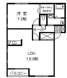 【1LDK】 洋7.2 DK15.8